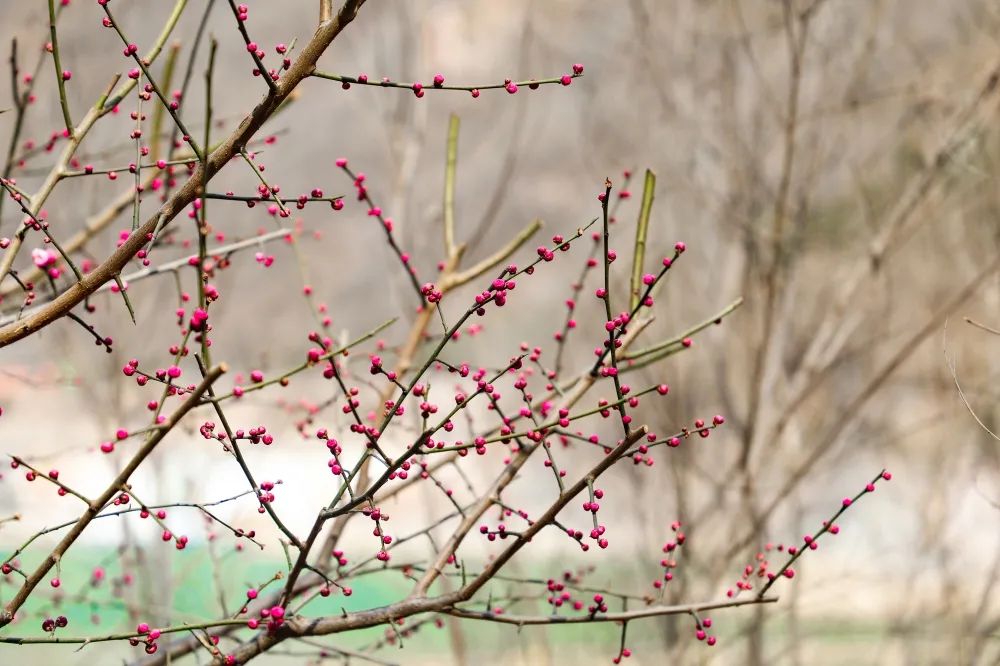 枝頭粉色花苞嬌艷欲滴