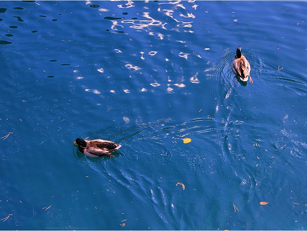 碧水上的野鴨追逐嬉戲