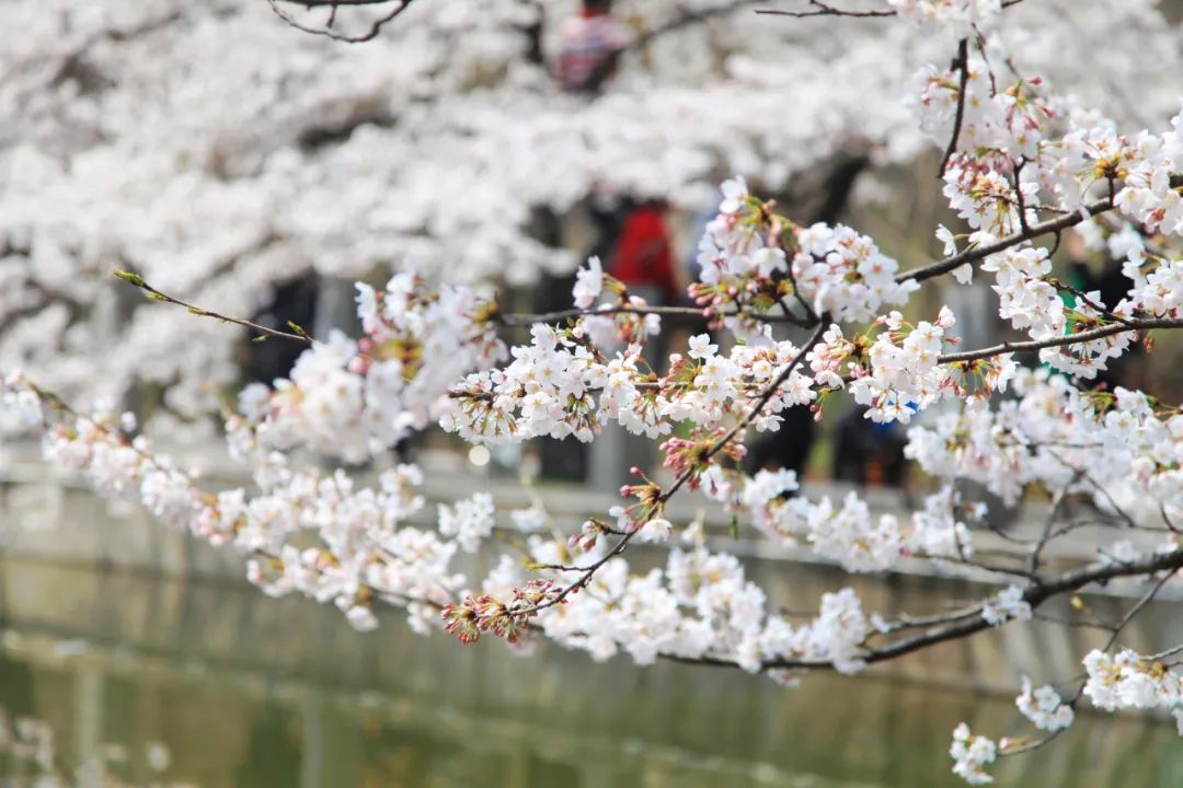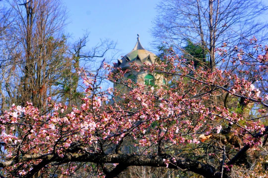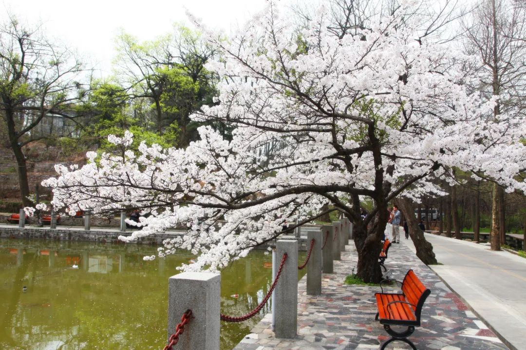 如果來時,櫻花已開,你也可以繼續(xù)往前走。來到消夏園,那里櫻花簇簇,是拍照打卡的好地方。
