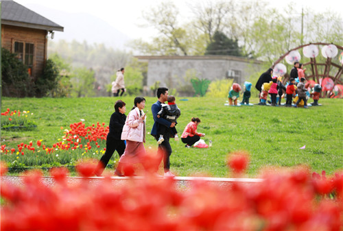 一步一風(fēng)景,親子游玩、拍照打卡,一切都是那么溫馨。無論是懷里抱著的小寶貝,還是牽著手拉著一起的小朋友,在郁金香的花海里更顯得可愛了些。