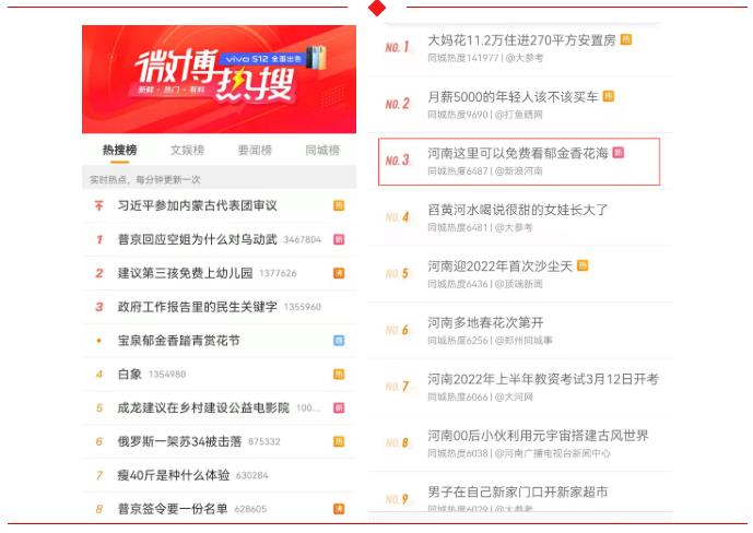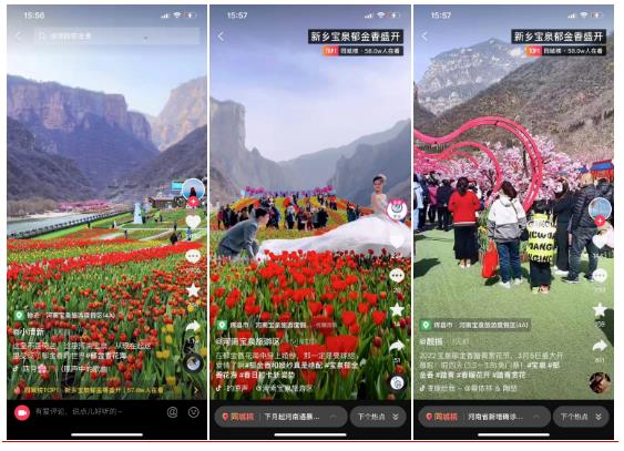 寶泉郁金香踏青賞花節(jié)盛大開幕,百萬(wàn)株郁金香組成的花海,點(diǎn)亮寶泉花海,《新聞聯(lián)播·大美中國(guó)》又現(xiàn)寶泉郁金香,就在開幕式當(dāng)天,#寶泉郁金香踏青賞花節(jié)#登上省微博熱搜,#河南這里可以免費(fèi)看郁金香花海# 登上同城熱搜榜TOP3,抖音熱點(diǎn)話題 #新鄉(xiāng)寶泉郁金香盛開# 登上同城榜TOP1,話題一經(jīng)發(fā)出,引發(fā)眾多網(wǎng)友參與,紛紛在郁金香花海中許下【春日心愿】!
