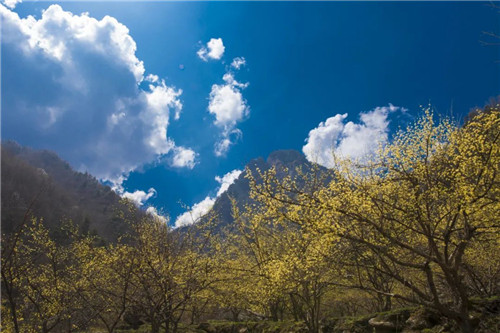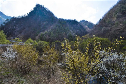 每年3—4月,冬雪消融,河水豐盈,河谷沿岸,茱萸花競相開放。因花期較早,萬物剛剛復蘇的季節(jié),大片大片的黃色花海,顯得格外醒目鮮艷。