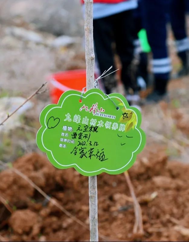 你扶樹(shù)苗、我填土、他澆水、覆土后再用力踩實(shí)。一套連貫的組合動(dòng)作后,樹(shù)苗植好。在樹(shù)上掛上認(rèn)養(yǎng)卡片,從此它不單單是一棵樹(shù)苗,更寄托了植樹(shù)人(認(rèn)養(yǎng)人)的心愿。