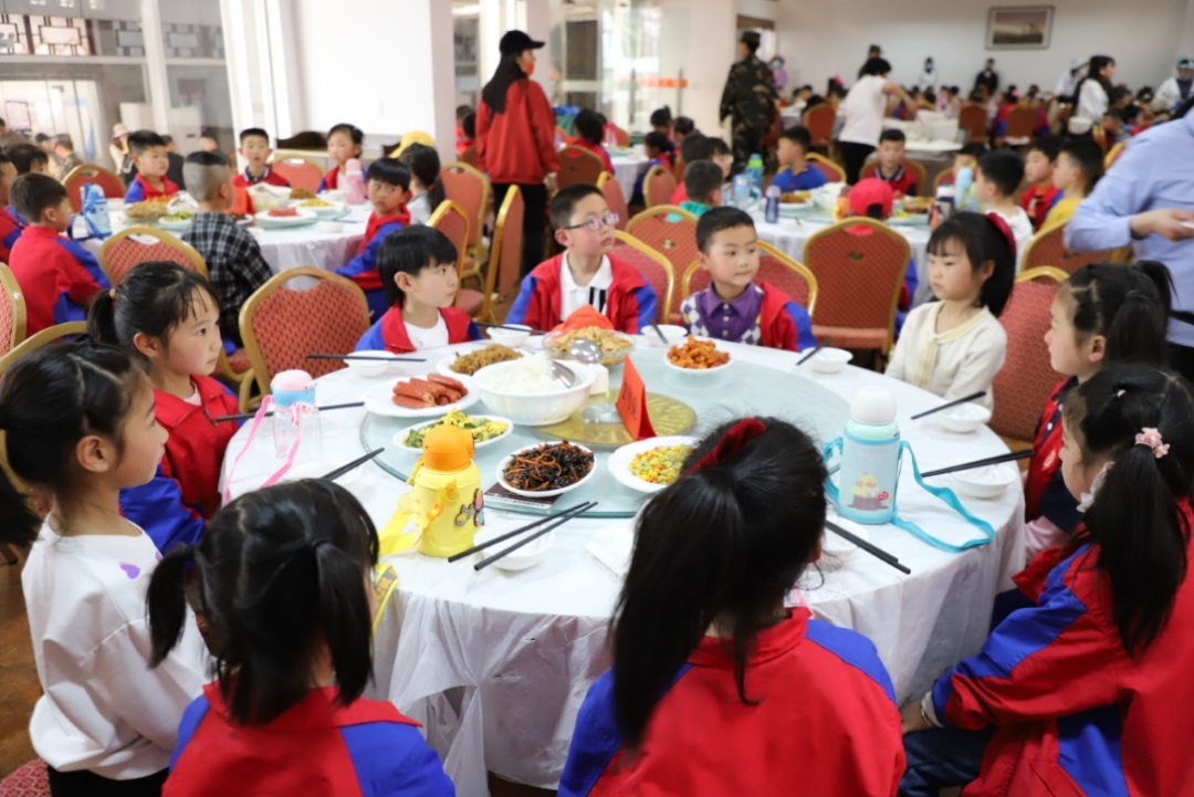 “鋤禾日當午,粒粒皆辛苦”...在教官的引領下,同學們一起背誦《憫農》等餐前詩詞。通過餐前文化,使同學們了解糧食的來之不易。從端正、整齊的餐前坐姿可以看出同學們在研學的過程中正逐步成長~
