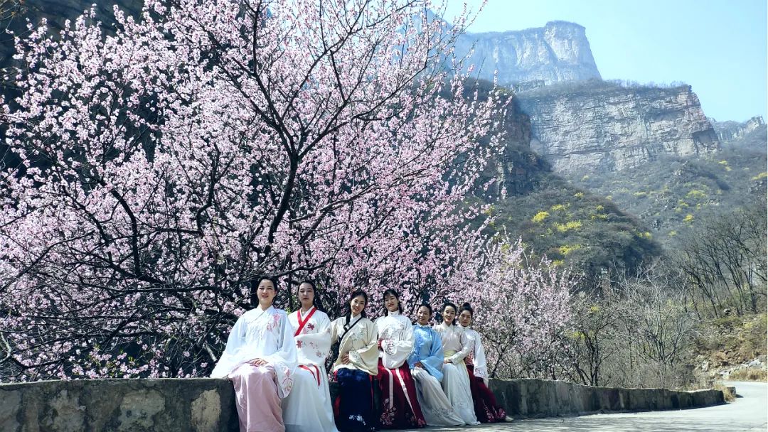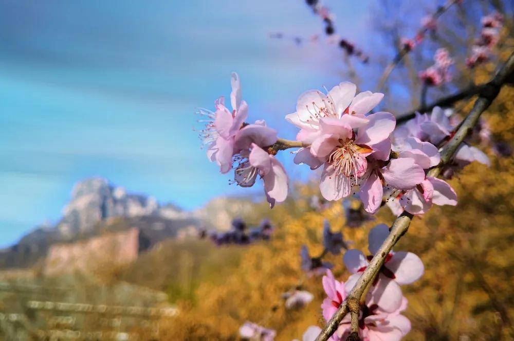 不知不覺春歸來,桃紅復含宿雨,柳綠更帶朝煙。鶯啼,柳綠,不覺萬物復蘇,南太行山脈春色正濃。
