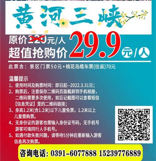 三月,宜出游,宜探花,黃河三峽景區(qū)29.9元,穿山越海,看滿山的原生態(tài)山桃花,一舉多得,滿滿的性價(jià)比~