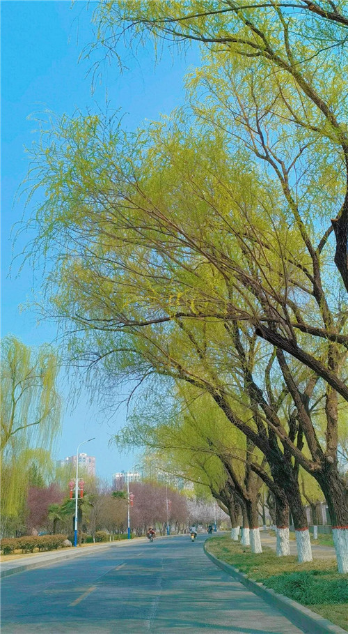 路邊大片的玉蘭花都開了,星星點(diǎn)點(diǎn)的鮮花點(diǎn)綴著,路過此地能聞到陣陣芳香。藍(lán)天下的鮮花仿佛“報春鳥”,告示著路人已是春暖花開時節(jié)。