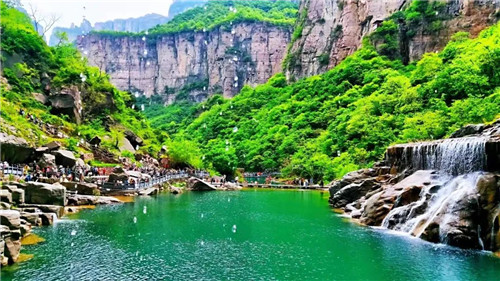 煙波浩渺的泉水溪流,青峰疊嶂的群山,絕色的清麗,絕色的冷艷,滿目的青綠和萬年的滄桑變化,都凝滯在這綿長的新鄉(xiāng)南太行,都融入進(jìn)了這幅畫卷。