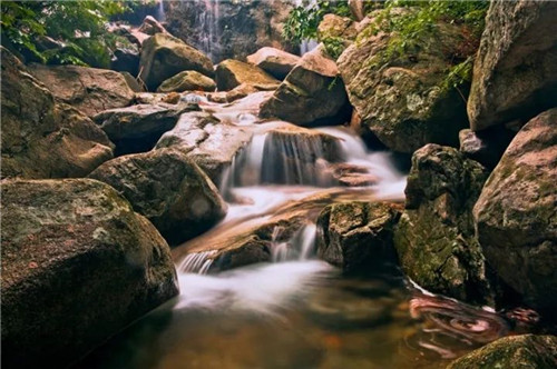 從馬鬃巖往下,怪石林立,形態(tài)各異;濃蔭覆蓋,藤蔓纏絡(luò);飛瀑流泉,藏于其間;小鳥相鳴,空谷傳響;泉水激石,珠玉飛濺。坐古藤之下,遙懷古之幽夢(mèng),倍感時(shí)間之深邃,世事之滄桑。這幽深秀麗之谷,人謂之名:追夢(mèng)谷。