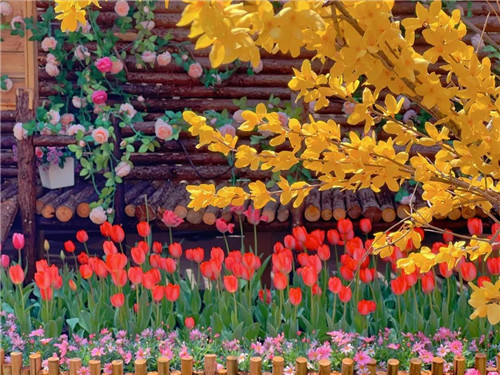 寶泉花舍院中的郁金香花上,還殘留著清晨的雨露;ㄉ、陽光、雨露、郁金香花在此刻組成了一幅絕美的畫中仙境。仙氣飄飄的小屋,童話般的小物件,百萬株郁金香花……你能想到的這里都有!
