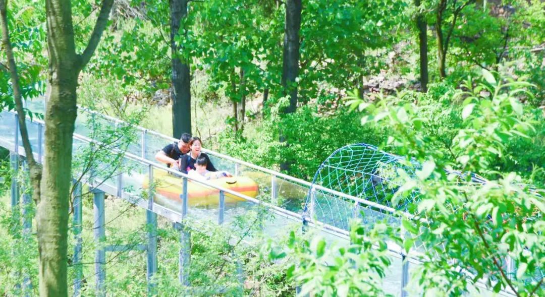 在懸浮于空中的滑道中任意穿梭,在水流的帶領(lǐng)下,穿過叢叢翠綠,千回百轉(zhuǎn),山間美景盡收眼底,漂流路線蜿蜒曲折,激流勇進(jìn),驚險(xiǎn)刺激,也特別適合家長和小朋友一起玩噢!