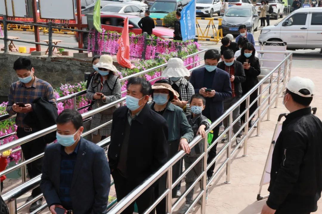 春光正好,花開正盛。清明節(jié)小長假,西九華山游客絡繹不絕,大家自覺佩戴口罩、掃碼測溫,景區(qū)工作人員依次核查游客健康碼和行程卡,提醒保持安全距離。