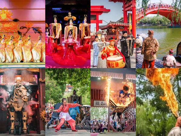市井街巷、河運(yùn)橋梁上各處,演員們?nèi)硇耐度霝橛慰统尸F(xiàn)的百場(chǎng)演出!《王員外招婿》的美好浪漫、《岳飛槍挑小梁王》的滿(mǎn)腔熱血、《大宋·東京保衛(wèi)戰(zhàn)》的壯烈震撼、《菊美人》《宋廷夢(mèng)樂(lè)》的唯美典雅,還有《包公巡視汴河漕運(yùn)》《神馬歷險(xiǎn)記》《民俗絕活》《氣功噴火》……清明上河園上百場(chǎng)演出的精彩,待開(kāi)園之后再一一品鑒。