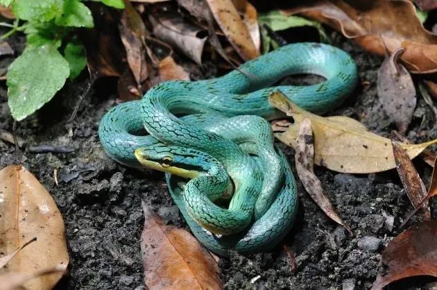 識別特征:全長1m左右,體細(xì)長,尾長約為全長的2/5,背面翠綠色,腹面淡黃色,眼后一條黑色縱紋穿過眼。棲息于海拔200~1000m的低山、丘陵的樹林,樹棲,以鳥、蜴及小型哺乳動物為食。這種蛇主要分布在信陽地區(qū),數(shù)量少,屬稀有種。