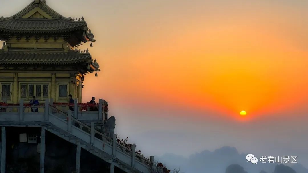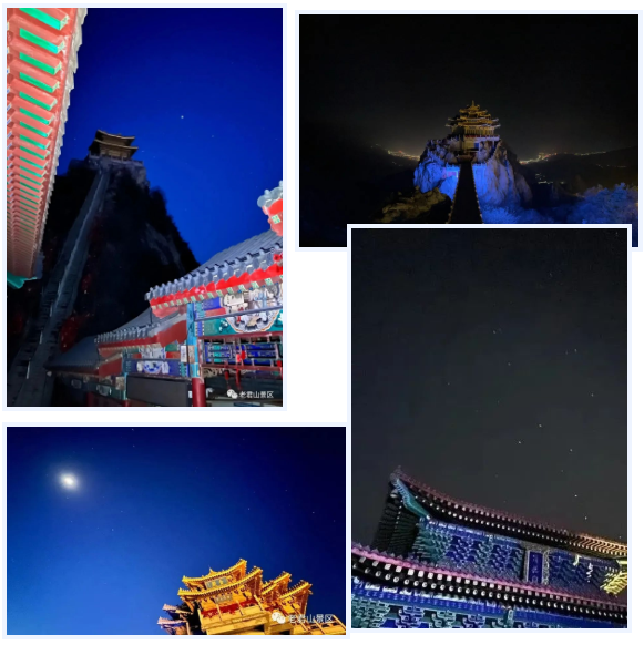 四月的夜晚,風(fēng)還是有些冷的。無人的山頂也只有風(fēng)聲在耳畔響起。如若不是星星透過薄霧一閃一閃,你會(huì)誤以為是陰天。夜里的老君山,墨藍(lán)與金色一拍即合,呈現(xiàn)出不一樣的視覺感受。