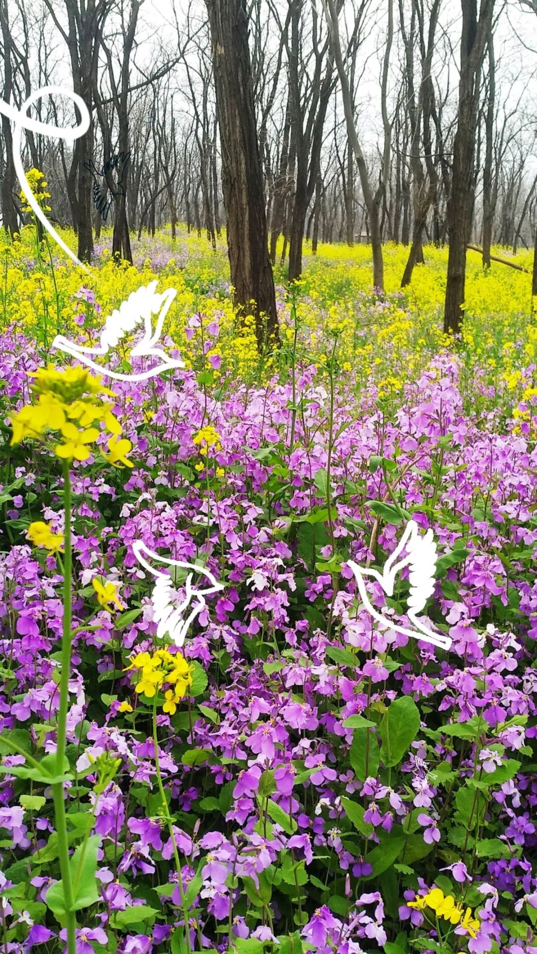 只有看過大片金黃色的油菜花海,才能真正理解“春光無限”的意思。而森林公園的春天,除了油菜花,還有二月蘭。