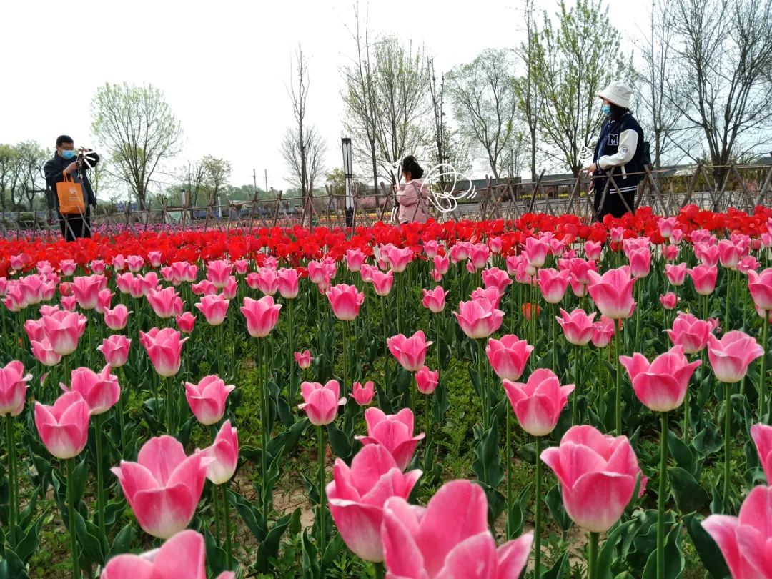商丘市賞郁金香的地方,就是漢梁文化公園了。這里郁金香的種植面積為4500平方米,共計約20萬株郁金香,按照大紅、玫紅、黃色、紫色等不同的顏色,進行分區(qū)域種植。