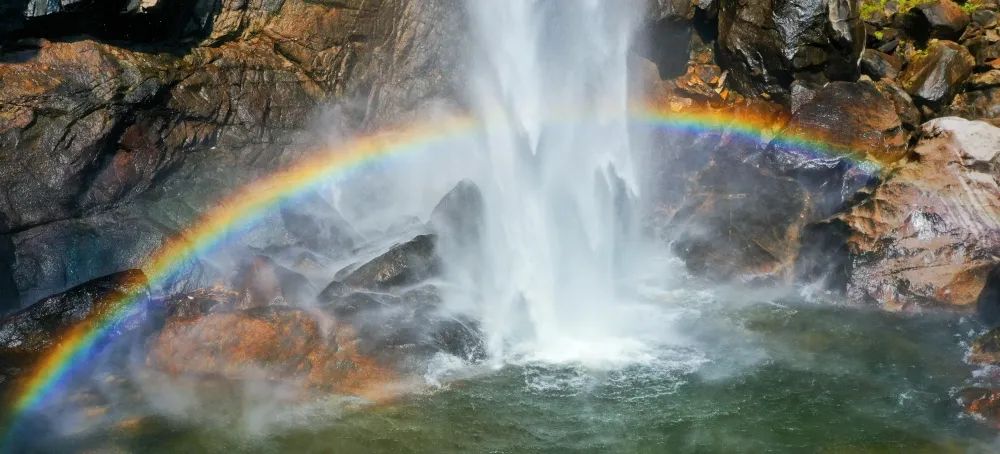 天氣晴好時(shí),水霧彌漫,映出彩虹