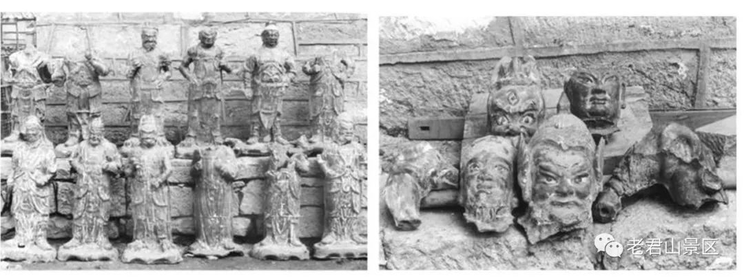 由于自然災(zāi)害、人為事故或烽火硝煙,老君山原有古建筑已蕩然無存,唯存的有大量的鐵鑄文物、碑碣及木、紙、銅殘片依然檢閱滄桑。老君山遺存文物主要有鐵鑄造像、放光金殿、大鐵鐘、鐵瓦、碑刻等。從這些只磚片瓦中,從文字的記載里一起了解一下吧。