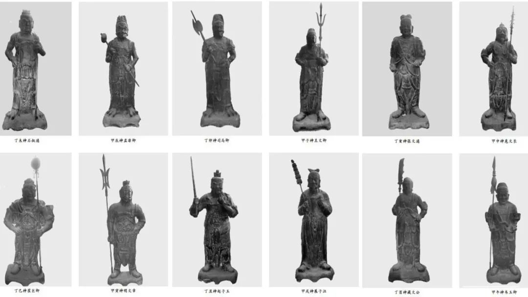 在現(xiàn)存的14尊鐵鑄造像中,其中12尊整體形態(tài)、高低近似,為鐵制文物“六丁六甲”鐵鑄護(hù)法像,分別對(duì)應(yīng)人的12生肖相。