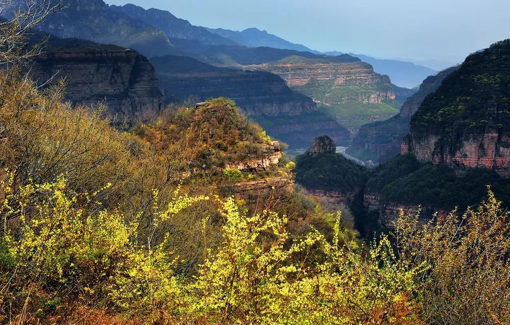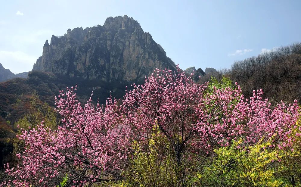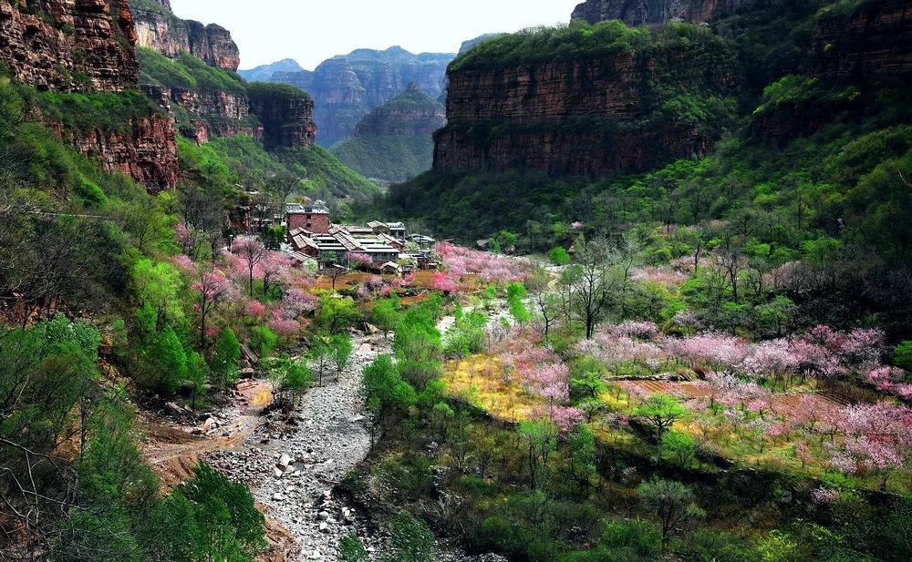 四月桃花谷風(fēng)景區(qū),太行山麓中百花盛開(kāi),漫山遍野,崖壁山花,柳綠梢頭,成為太行山獨(dú)具特色的盛景。行走在繁花似錦的春天里,風(fēng)為信,花為媒,數(shù)以萬(wàn)計(jì)的山花肆意地盛開(kāi),燦若云錦,壯觀瑰麗,宛如仙境。