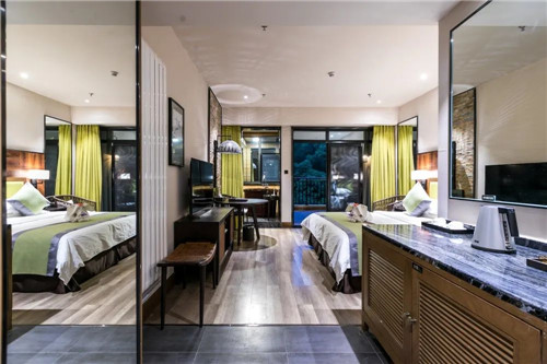 遠上寒山石徑斜,白云深處有人家。酒店位于洛陽白云山旅游度假區(qū)核心位置,建筑于青山碧水之中,靠山而臥,枕水而居,讓心靈與自然完美結(jié)合的“世外桃源”地。客房布置精致典雅、極盡舒適,擁有豪華套房、豪華標準間、普通標準間共112間,可同時容納200人住宿。所有房間配備中央空調(diào)、極速光纖、衛(wèi)星電視、更有觀景的陽臺泡池,可消除您一天的旅途疲勞,令您的起居倍感愉悅。