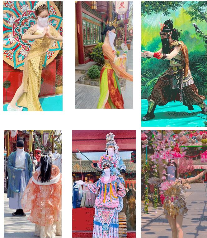 五一假日期間每天上演,《嗨玩快閃秀》、《文姬飛天》、《鼓上舞》、《拋繡球》、《鍋莊狂歡》等各種精彩演藝秀。