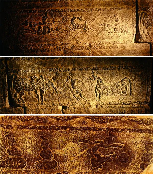 “少室闕“整體以青灰色塊石筑成,分東、西二闕。其闕身刻有車馬出行、比翼鳥、車馬出行、蹴鞠、斗雞、獸斗等畫像70余幅,手法夸張、風(fēng)格飄逸,是研究我國古代雕刻、美術(shù)史的珍貴歷史資料。而畫像之余的銘文篆書、建筑框架等內(nèi)容更是成為我國歷代金石學(xué)家及建筑學(xué)家們進行學(xué)術(shù)研究的重要實物例證。