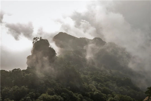 雨后起伏跌宕的山巒,在霧靄中若隱若現(xiàn),愈往山上行,云霧愈濃,霧氣仿佛觸手可及,不知是天上還是人間,朦朧的感覺讓人心醉。