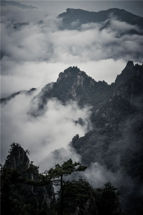 雨天,少了紛紛擾擾的“雜色”,云霧中的老君山如夢似幻,這份美景,你愛了嗎?
