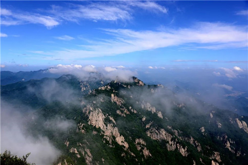 佇立于老君山之巔金頂,湛藍(lán)的天空下,看到的是漫無(wú)邊際的云,波瀾壯闊如臨于大海之濱,波起峰涌,瞬息萬(wàn)變。