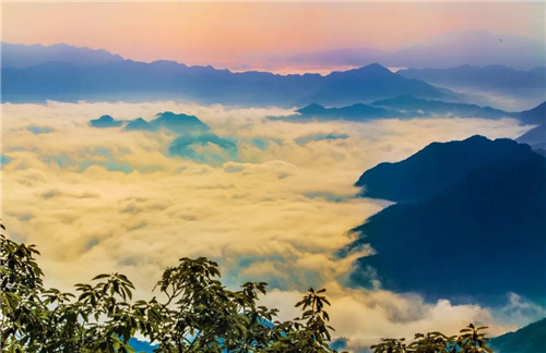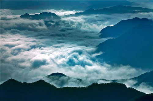 一場(chǎng)雨,一座山,一望無(wú)際是云海。