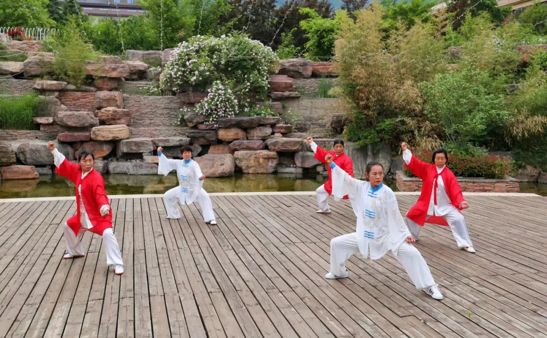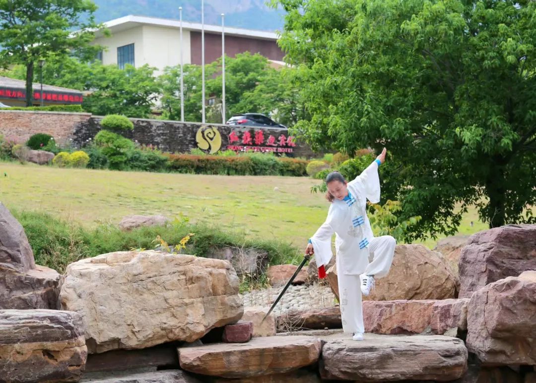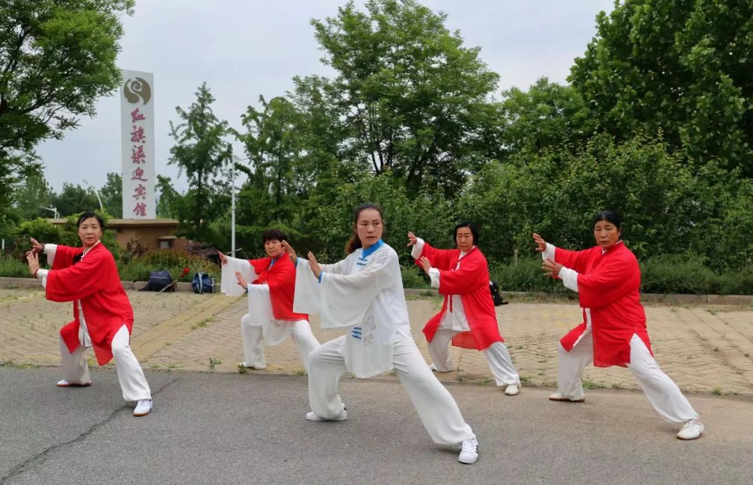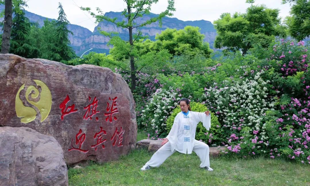 每天清晨,晨光微曦中,一群白衣飄飄的太極人在紅旗渠迎賓館園區(qū)研習(xí)太極,已成紅旗渠迎賓館一道獨(dú)特的風(fēng)景線。