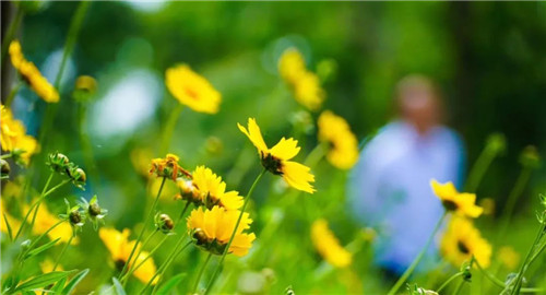 遠觀綻放的金雞菊,一片連著一片,美得驚嘆;近看盛放的金雞菊,嬌俏玲瓏,清新嫵媚,吸引著路人的視線,為它流連駐足,為它暢游抒懷。