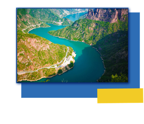 游龍灣穿行在這太行曲峽間,青黃雙色匯聚于此,為寶泉秘境增添了幾分神秘感。