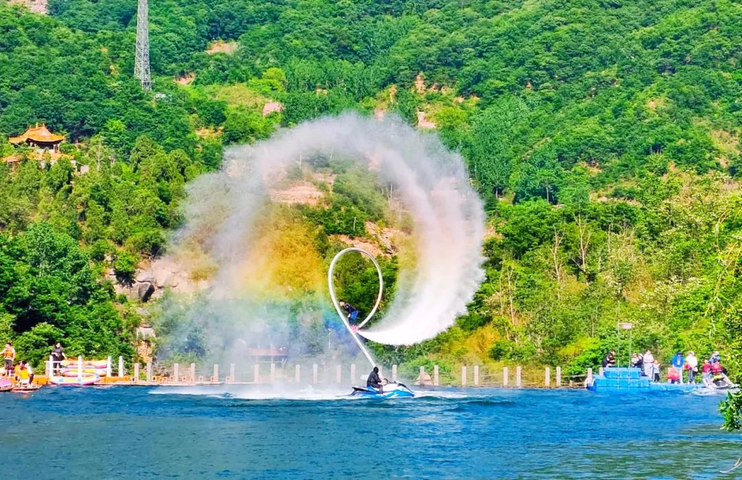 八里溝有北方水世界之稱(chēng),在藍(lán)天白云下劃著竹筏,欣賞著兩邊的美景,甚是悠閑自在,同時(shí)也可以體驗(yàn)一下,驚險(xiǎn)刺激的水上飛人。