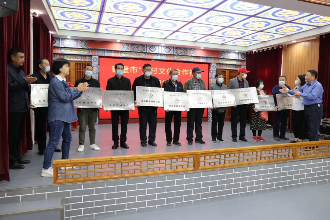 揭牌儀式上,鶴壁市文廣旅局副局長谷慧勇、淇縣人民政府副縣長郭增福共同為“淇縣戲曲文化合作總社”揭牌,二級調(diào)研員蘇輝、市公共服務(wù)科科長常寧和淇縣文廣旅局黨組書記、局長李鵬共同為11個戲曲分社頒牌。