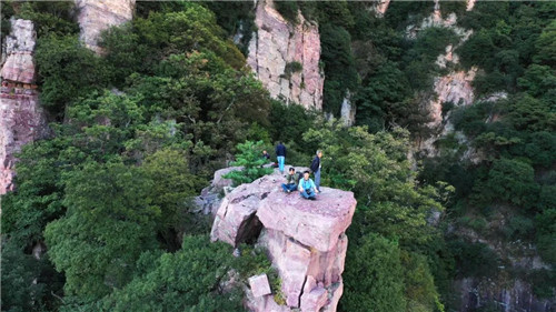 媧皇山的半山腰神奇的娃娃崖,為女媧造人時(shí),用力過(guò)猛甩在山崖上泥漿變化而成。