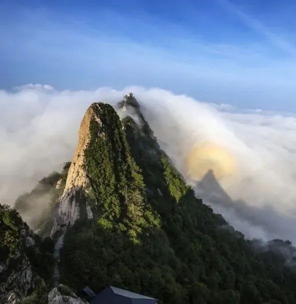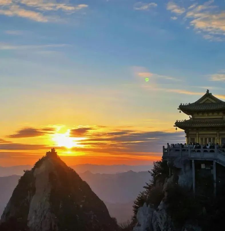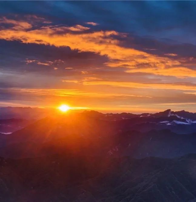 老君山的日出瑰麗榮華,這是晨光與黑夜交替的時刻。你乍看上去,黑色還似乎強大無邊,可是一轉(zhuǎn)眼,清冷的晨曦變?yōu)槌嗉t色的光芒。太陽翻登了云背,臨照在天空……觀日出奇景,體會著李世民那句“拂曉云布色,穿浪日舒光”的旖旎。