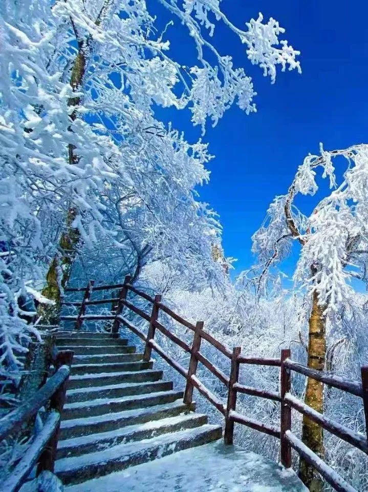 老君山的霧凇,是一場樹木與冰雪的奇緣,是一段人們與仙境的美麗邂逅,每當霧凇來臨,老君山頂?shù)乃蓸渚蜁Y(jié)銀花,把人們帶進一個晶瑩剔透的童話世界,雪是仙女撒的碎玉,是微風放飛的柳絮,是冬天特有的蝴蝶。雪中的金殿顯得更加靜謐,天地之間渾然一色,構(gòu)成了一軸風光無限的畫卷!