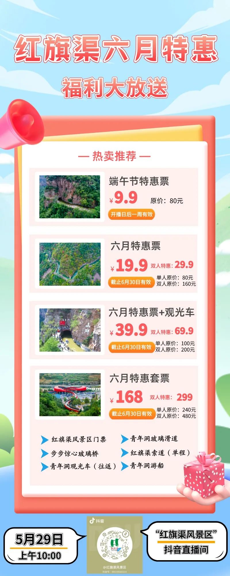 叮咚 夏日福利即將到達(dá) 請注意查收! 紅旗渠六月特惠 您的端午節(jié)假期、畢業(yè)旅行、家庭自由行... 所有福利已安排!
