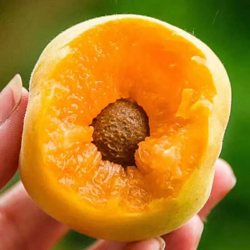橙黃色的果肉,質(zhì)地松軟,鮮嫩多汁,酸甜適口,同時(shí)含有豐富的果肉纖維,嘗起來盡是香甜軟糯,口感極佳,被當(dāng)?shù)匕傩樟袨榇退投Y之上品。