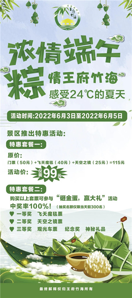端午小長假馬上到啦,此番良辰美景,怎能錯過?“粽”情山水間,暢游王府竹海,好玩、好看,端午文化一網(wǎng)打盡,滿滿儀式感!