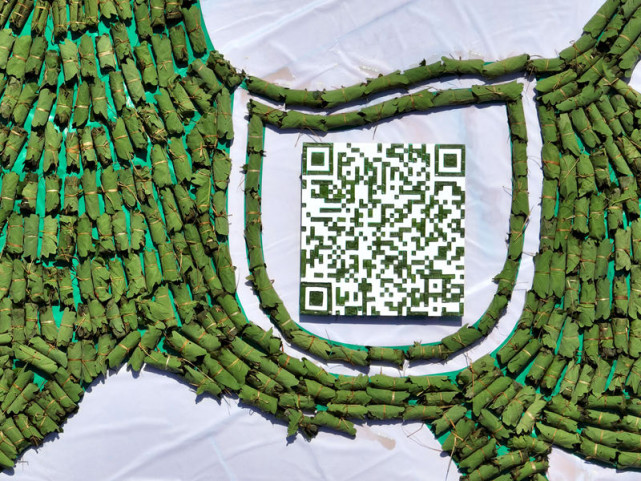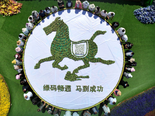2022年6月2日,中國(guó)的傳統(tǒng)節(jié)日端午節(jié)就要到了,在河南洛陽(yáng)老君山,景區(qū)工作人員包一千余枚槲包拼成直徑8米的馬踏飛燕造型,并且手工用槲包葉子一小塊一小塊的拼成了老君山景區(qū)的通行場(chǎng)所碼的二維碼安放在馬背上,有立馬通行之意,迎接端午節(jié)的到來,這個(gè)超級(jí)“綠碼”即融入了中國(guó)的傳統(tǒng)節(jié)日,又讓大家在掃場(chǎng)所碼時(shí)眼前一亮,一匹奔騰的綠色駿馬,又給人以?shī)^進(jìn)和期許。
