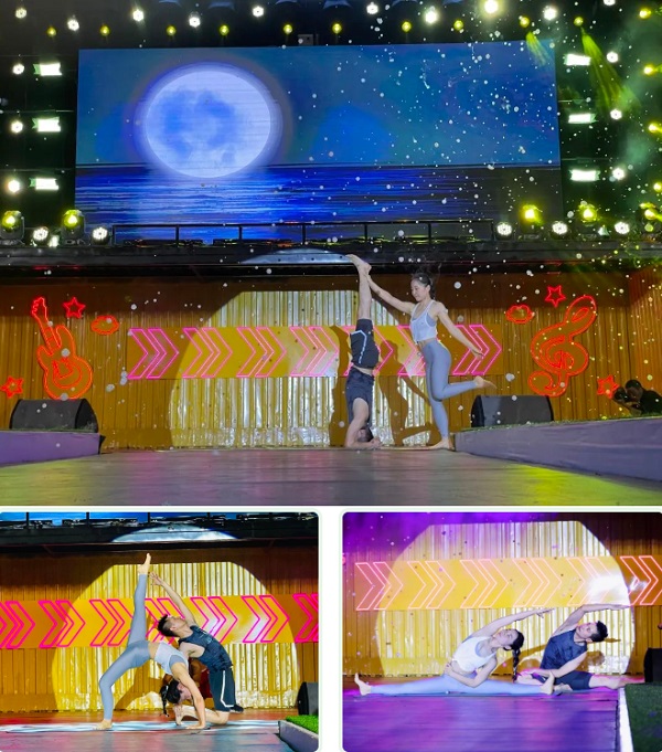 向在場的觀眾展現"瑜伽之美"