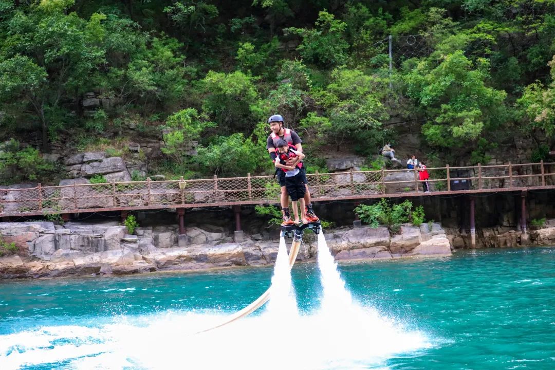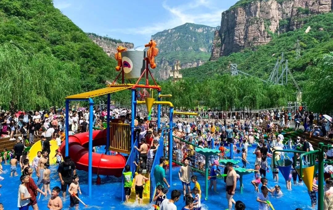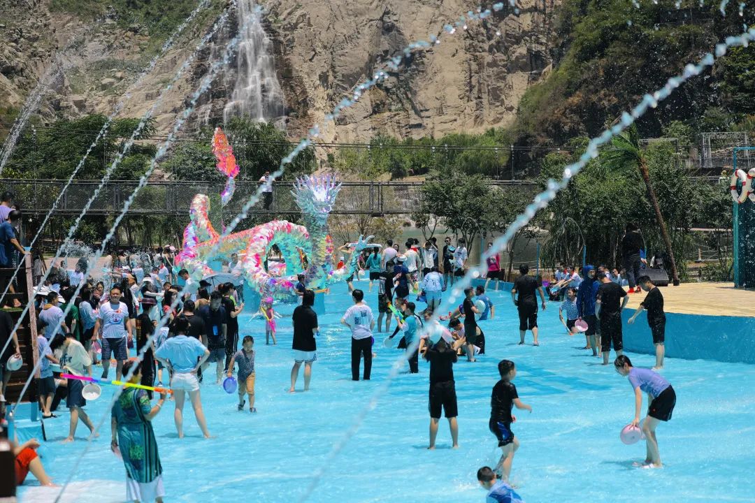 今年,寶泉潑水狂歡季依托“水”的優(yōu)勢和新潮玩法,全面升級玩水場地,特別打造玩水管家,推出了“一站式”、“白+黑”旅游新模式,白天潑水狂歡,晚上帳篷露營。白天,孩子們可以在“宮崎駿的夏天”場景中盡享童真童趣;青年人可以在摩托艇和水上飛人的速度中潑灑激情;成年人可以在海島風情的潑水廣場放肆嗨玩;景區(qū)多處天然戲水淺灘摸魚捉蝦的場景會讓你秒回童年。夜晚,山谷打卡、帳篷露營,啤酒燒烤、潮流藝演,讓你感受來自太行山谷的野奢夜生活。