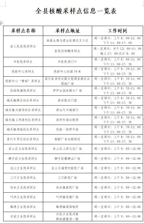 ⑥可在欒川縣免費核酸檢測點提前檢測,全縣共設置23個核酸采樣點,其中縣城區(qū)10個,縣城區(qū)域以外的13個鄉(xiāng)鎮(zhèn)各設置1個(采樣點信息附后);縣人民醫(yī)院采樣點提供24小時核酸采樣服務。免費檢測點分布如下: