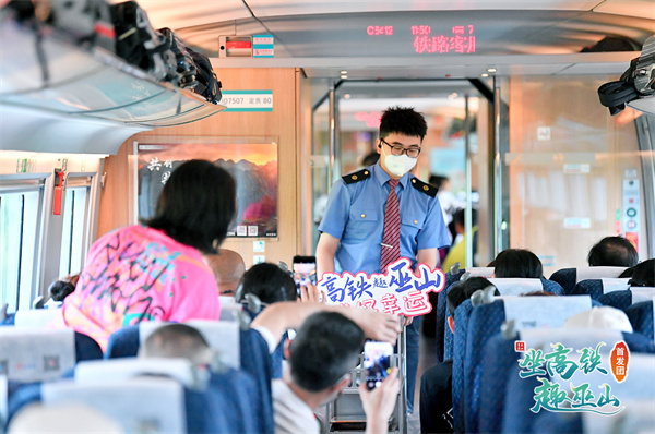 來自鄭州的宋女士在接受記者采訪時表示,一直以來都對巫山非常向往,但之前由于交通不便,路途時間太長,始終都沒有機(jī)會到巫山旅游,現(xiàn)在高鐵通車了,正好在網(wǎng)上看到本次首發(fā)團(tuán)的報(bào)名信息,就立即和家人一起報(bào)名參加。今天三小時多一點(diǎn)的時間就到了巫山,又快又舒適,終于可以實(shí)地感受巫山云雨和三峽腹地的魅力了。
