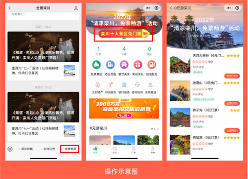 游客可以通過欒川縣文化廣電和旅游局官方微信公眾號“全景欒川”,點(diǎn)擊“免票暢游”菜單專區(qū)進(jìn)入預(yù)約頁面,選擇景區(qū)填寫信息進(jìn)行預(yù)約。預(yù)約成功后的游客到達(dá)景區(qū)后,出示預(yù)約碼,核驗(yàn)成功后可快速通行入園。
