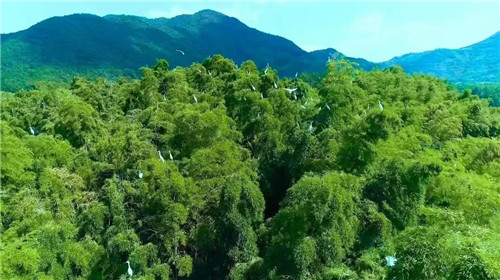 外面通亮透明,內(nèi)飾干凈整潔,與周圍茂密的竹林,形成了別樣的景色。